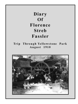 This is the diary of Florence Streb Fassler on her trip through Yellowstone National Park in 1910 in a covered wagon at the age 16. A traveling party consisting of Mrs. and Mr. Wm Lacy, Opal and May Lacy, Pap Rickers, and Florence Streb; departed from Melrose, Montana for a trip through the first United States National Park, on August 1, 1910.