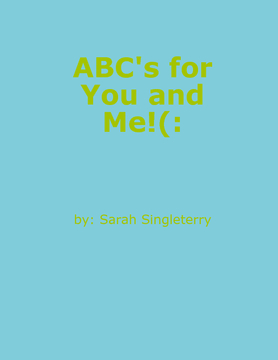 My name is Sarah Singleterry. I am 14 years old. I chose to write an alphabet book because I think it is important for children to learn the alphabet and what better way for them to learn than through a book.