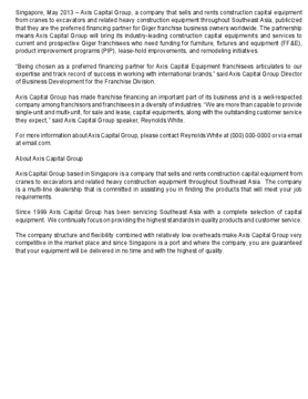 Axis Capital Group is servicing Southeast Asia with a complete selection of new and used construction equipment. The company structure and flexibility combined with relatively low overheads make capital equipment very affordable in the marketplace.