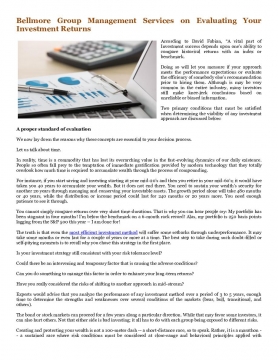 According to David Fabian, “A vital part of Investment success depends upon one’s ability to compare historical returns with an index or benchmark.