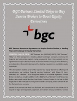 BGC Partners Announces Agreement to Acquire Sunrise Brokers, a Leading Financial Brokerage for Equity Derivatives