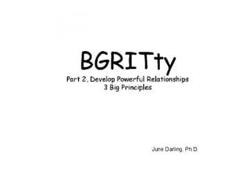 Research shows that strong relationships increase mental toughness and success. Developing strong relationships at work and in general are not easy. Three researched principles are unveiled. Researched ideas of how to best implement the principles are also offered. Part two continues to build on the BGRITty pyramid introduced in the first book, BGRITTY, Huh?