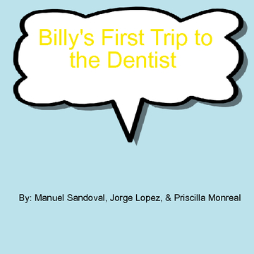 Billy is a young boy that is about to take a visit to the dentist for the very first time. Not knowing what to expect, he is scared out of his mind. What he doesn't realize is that there is nothing to be afraid of. With a little reassurance from his new friend Bruce and the dentist, he makes it out of there with a new found confidence.