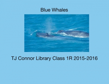 First graders researched blue whales in the library. This books illustrates the facts they learned.