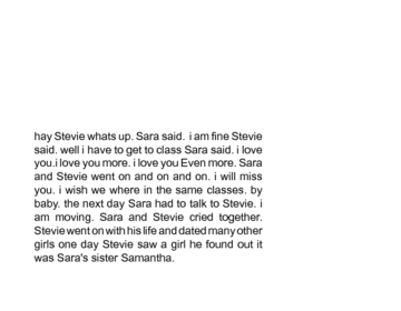 sara and steve have been dating for 5 years they love each other but one day sara has to move steve and sara cryed together they where so sad...