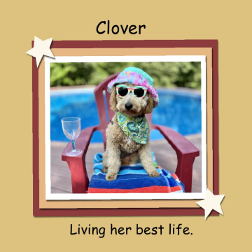 Clover is a mini Golden Doodle who was rescued from a puppy mill. She is very patient in wearing various costumes to have her pictures taken. We love to bring a smile to peoples faces.