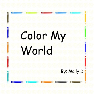 A book about the colors of our world. Most of these colors will mostly be from the rainbow like red, orange, yellow, green, blue, purple. You might see pictures of symmetry, leading lines, balancing elements, and rule of thirds.
