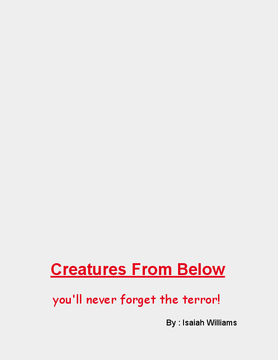 i'm a young author who lives kansas city that loves to write books.this book popped in my head from the videos and pictures about strange and mysterous creatures on youtube, so i grabed the creature and put it in my book "Creatures From Below." This book is not the only book i've wrote, i've wrote "Mysterous island," "Unknown planet," and "The Demon Inside." feel free to comment on my books telling if its boring, alright, and excellent.