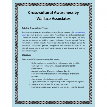 This programme enables you to become an effective manager of a cross-cultural team, especially a remote regional team.