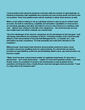 Cloud providers have attracted enterprise customers with the promise of rapid elasticity, on-demand provisioning, high availability and a pennies-per-hour pricing model. But there's just one problem: These very qualities have enticed criminals to adopt cloud services as well.