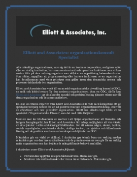 Elliott and Associates har vuxit till en ansedd organisatoriska utveckling konsult (ODC), en unik och lyhörd resurs för den moderna organisationen. Som en ODC, därför kan Elliott and Associates ge sina kunder samråd och problemlösning tjänster relaterade till deras organisation och dess personalbehov.