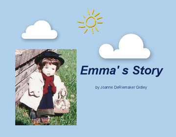 I, Joanne Marie DeRiemaker Gidley, will try to tell Emma's Story as it was told to me by my mother who was the little girl in this journey.