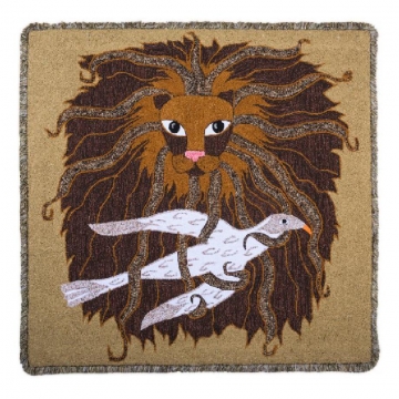 Fables in Form and Fiber features contemporary fiber works and painted ceramic platters by Troy Dugas. The fiber pieces incorporate hooked fabric, punched yarn, embroidery, found objects, rope, and fringe, while the ceramic platters represent painterly variations of the sinewy tapestries. They feature motifs and imagery rooted in the history of textiles and indigenous folk art and evoke a precarious balance between strength and vulnerability. The combination of these sources reveals a powerful tension between innocence, beautiful nativity and our relationship with nature, mortality, and the ethereal. Through a meditative and labor-intensive process, Dugas’ work becomes a place of self-discovery. The resulting imagery creates narratives that express his adoration and feelings of connectedness to visual representations, cultures, and techniques he references.