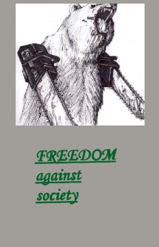 In this world it is freedom against society. I am a 12 year old girl and this is just a quick view of my opinion.
