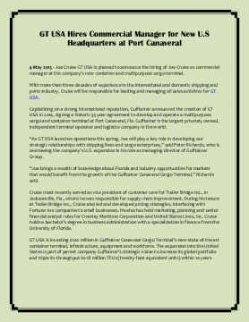 With more than three decades of experience in the international and domestic shipping and ports industry, Cruise will be responsible for leading and managing all sales activities for GT USA.