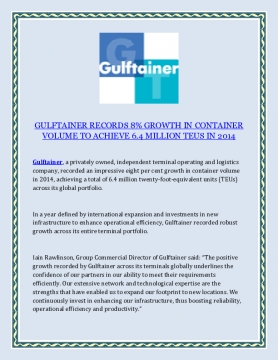 Gulftainer, a privately owned, independent terminal operating and logistics company, recorded an impressive eight per cent growth in container volume in 2014, achieving a total of 6.4 million twenty-foot-equivalent units (TEUs) across its global portfolio.