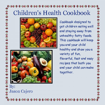 This cookbook consists of easy to prepare health recipes that every child can help make. I am making this cookbook to show a variety of different recipes that are healthy and not so fattening and bad for children to eat. Childhood obesity is an epidemic and by making this book I hope to change alot of lives with these recipes.