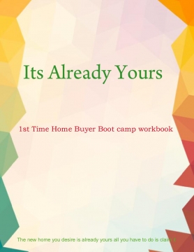 This work book will teach you how to transform your mind into understanding that what you desire is already yours. Once you understand that you are worthy of what you are asking for (your home) you will then be taught all the technical components of purchasing said home. You will learn about the credit requirements to purchase a home and how you should prepare yourself for the loan application. All the steps in the home buying process, how to be finically prepared after closing on your home and so much more.