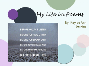 This book of poetry was written by Kaylee Ann Jenkins age 14, who lives in Madison, Indiana and attends Southwestern High School. Kaylee enjoys listening to music, playing football, spending time with friends and family, singing and dancing. Kaylee was diagnosed with type two diabetes in 2005. She also went through Hurricane Katrina in her hometown, Baton Rouge, Louisiana. Losing almost everything and spending loads of time in a hospital has made Kaylee a very strong, independent young woman.