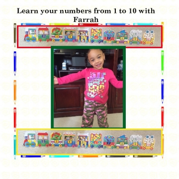 Farrah enjoys learning her numbers in a fun way. As she traces each number with her fingertip. Building the train with all the passengers then she would says all aboard! Counting and learning her numbers from 1 to 10. Learn your numbers with Farrah.