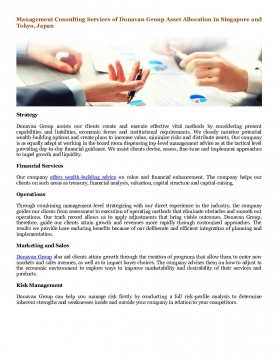 Donavan Group assists our clients create and execute effective vital methods by considering present capabilities and liabilities, economic forces and institutional requirements. We closely monitor potential wealth-building options and create plans to increase value, minimize risks and distribute assets. Our company is as equally adept at working in the board room dispensing top-level management advice as at the tactical level providing day-to-day financial guidance. We assist clients devise, assess, fine-tune and implement approaches to impel growth and liquidity.