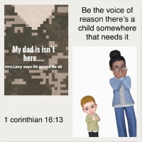 Story of a little boy who’s dad has been Deployed and he misses him so his mom calls his mentor to help him out