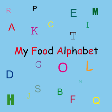 The book contains the letters of the alphabet with selected food items that start with the letters A-Z.