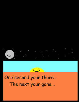 The moon was very jealous of the sun. The moon decided to trap the sun... The Moon comes to realize. That sun was just as jealous of the moon, as the moon is was of the sun.