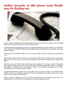 We all should be thankful on this Thanksgiving Day that one of the worst scams to hit the Lehigh Valley, and the nation, finally is on its way to being cooked.