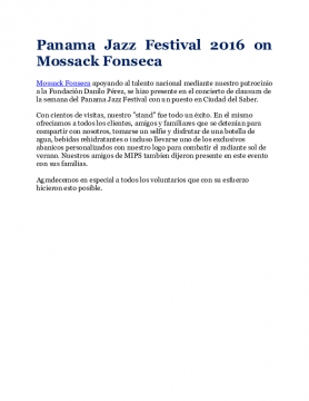 Mossack Fonseca apoyando al talento nacional mediante nuestro patrocinio a la Fundación Danilo Pérez, se hizo presente en el concierto de clausura de la semana del Panama Jazz Festival con un puesto en Ciudad del Saber.