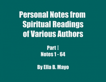 Ella Boudreaux Mayo's notes are her partial summaries of the works cited. They are not offered as original ideas, and are meant for readers who are seeking spiritual growth and perfection. They have been reviewed for doctrinal accuracy by her spiritual director, a Franciscan friar (now a Bishop appointed by Pope Francis) with a Master's of Divinity and a Licentiate in Sacred Theology.