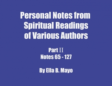 Ella Boudreaux Mayo's notes are her partial summaries of the works cited. They are not offered as original ideas, and are meant for readers who are seeking spiritual growth and perfection. They have been reviewed for doctrinal accuracy by her spiritual director, a Franciscan friar (now a Bishop appointed by Pope Francis) with a Master's of Divinity and a Licentiate in Sacred Theology.