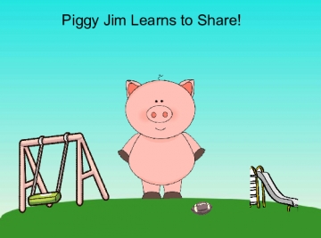 piggie jim is at a park and he has some food, to much for him and his friends come to the park and his friends ask if they can have some food he says no to all of them. Than his brother comes along and tells him mom said to share his food. lastly he goes around and give some food to his friends.