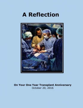 This is an assembly of photos, reflections, scriptures, health records, and more. It is a documented journey for you, from the onset of the kidney failure diagnosis, to the first anniversary of the simultaneous kidney and pancreas transplant surgery.