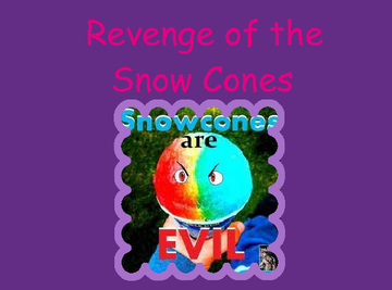 The snow cones are tried of being eaten so the come alive and try to take over the world. Only to find a suprise waiting for them.