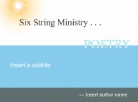 Sam and his wife Terri have been in mininstry for 11 years. Sam accepted Christ at a young age and it took nearly 20 years for him to experience Christ on a personal level. After his battles of nearly losing his life and the trajec accidents that took his father and sisters lives, he found a new strength. Out of this new and life changing experience with Christ spawned Six String Ministry. Sam wrote songs about his walk with Christ and battles at first as a way to pray to God and thank Him. Now Terri and his ministry have been an encouragement to many across the country as they share thier story and music.