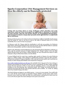 Sparks Corporation USA Management Services on How the elderly can be financially-protected