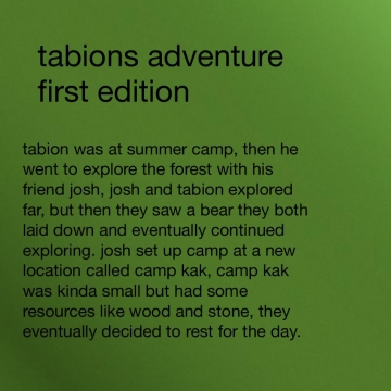 tabion goes on a adventure to find alot of things