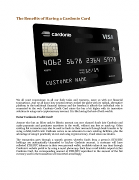 We all want convenience in all our daily tasks and concerns, more so with our financial transactions. And we all know how cryptocurrency rocked the globe with its radical, alternative platform to the traditional financial systems and the freedom it affords the individual who is connected to the web. Cardonio Credit Card raises the bar a bit higher with its innovative solutions to using one’s cyrptocurrency account. It is like having the best of both worlds.
