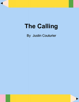 My name is Justin Couturier and I am a Junior at West Catholic. Im am writting the story The Callling for a project in my Religon class. The story is a real life description of Abrahams Calling or in the Bible Gen. 6:1-7.