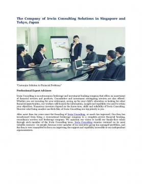 Irwin Consulting is an autonomous brokerage and investment banking company that offers an assortment of financial services and products.