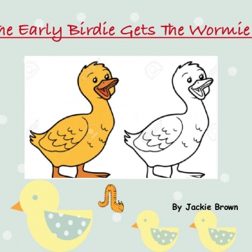 The book's about 2 birds that always fight about getting the worm that appears at their spot every morning. Bulbi is the blue bird that always shows up on time, very responsible, and is always trying to do his best. Scatterz is the green bird that doesn't like getting up early even though he knows it's required to do, never shows up on time, and doesn't care about anything or hisself. They always fight about the worm everyday. Bulbi thinks it's fair to get the worm since he's always on time. Scatterz thinks he should get the worm because he thinks he deserves it.