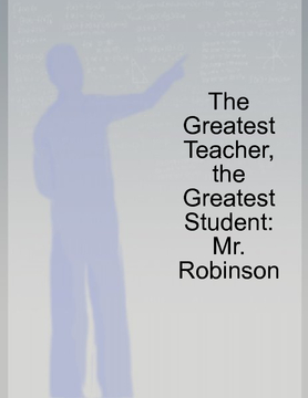 The greatest teachers were not the just the greatest students during their schooling years. They are still the greatest students...even as a teacher. As education becomes more focused on a standardized system, teachers are pushed to merely teach the curriculum that they are given, hand out the assigned worksheets, grade the tests, and progress their students to the next level. Few teachers break this mold that has become so prevalent in the educational system by challenging students to a higher level of thinking. One of them is Mr. Robinson.