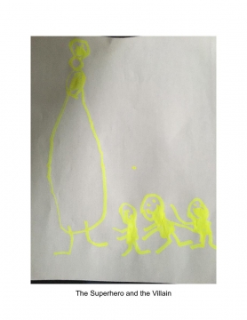 A fiction book about superheroes and a villain that transforms but can never win.