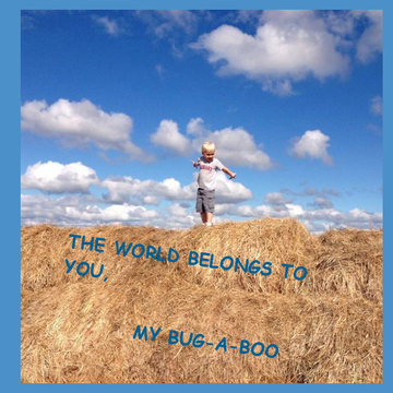 Every Grandma needs a grandson that meets the description of a Bug-a-boo. A Bug-A-Boo is a grandson that giggles when you tickle him and says, "Grrranndddmaaa stop". Most importantly, a Bug-A-Boo is the spitting image of your grown son and when he laughs and giggles, you see your son many years before. Thank God we have our Bug-A-Boos to love and tease and keep our memories alive. This is to my Bug-A-Boo, who keeps Grandma running and loving it too.