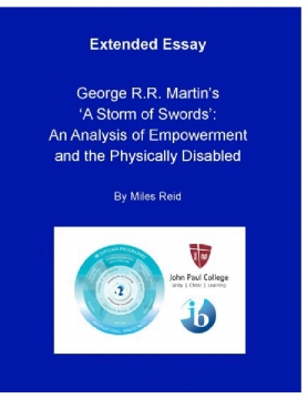 This essay will investigate “To what extent George R.R. Martin seeks to empower the physically disabled in ‘A Storm of Swords’”. The scope of the investigation is an examination of the literary feature that surrounds the novel’s characters with physical disabilities: Tyrion, Varys, Brienne and Jaime. In the novel, Martin structures these characters to have an increasingly strong influence over their own lives, thereby empowering the stance of the minority. Moreover, the author reinforces that the physically disabled are capable of surpassing the abled, strongly suggesting that members of the minority group should not feel as if their disabilities bar them from success. Lastly, the essay argues that Martin portrays superficial values as insignificant in order to highlight the minority group’s potential value in society. The essay concludes that Martin uses his characters to reinforce messages relating to the present treatment of the disabled.