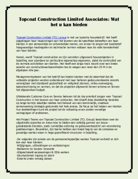 Topcoat Construction Limited (TCL) group is niet uw typische bouwbedrijf. Het heeft opgedragen haar inspanningen aan het leveren van de specifieke behoeften van haar klanten in een persoonlijke en ontvankelijke manier, om ervoor te zorgen dat kwalitatief hoogwaardige maatregelen en technische normen voldaan naar de volle tevredenheid van haar klanten.