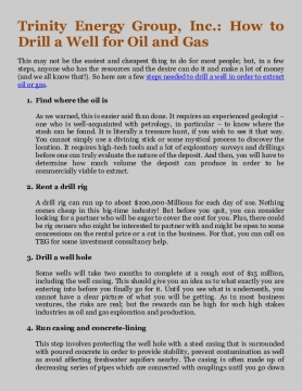 Trinity Energy Group, Inc.: How to Drill a Well for Oil and Gas