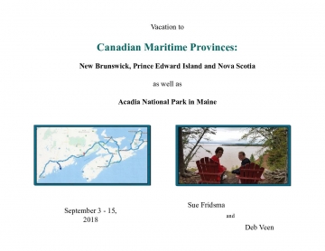 I and my niece, Deb Veen, traveled to and explored the Canadian Maritime Provinces and also Acadia National Park in Maine.