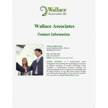 Wallace Associates is a locally-owned career management and coaching firm, leveraging over 25 years of business expertise, to provide customized career transition / outplacement, executive coaching, and personal coaching services. Through our partnership with OI Global Partners, we can offer these services through over 200 locally-owned offices in more than 25 countries.